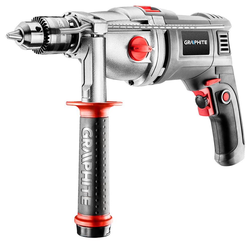 Högkvalitativ två-växlad slagborrmaskin som drivs med en kraftfull 1050 W motor. Det är tillförlitlig vid borrning av hål i trä, metall, keramik och plast.