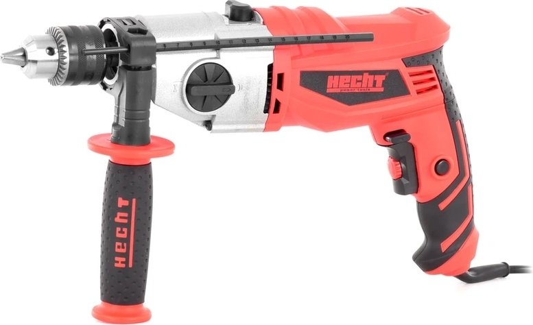Eldriven slagborrmaskin med variabel hastighet, extrahandtag och borrdjupmätare.