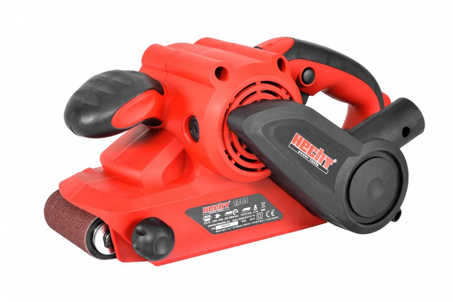 Eldriven handhållen bandslipmaskin (810 W). Slipyta - 140 x 76 mm.
