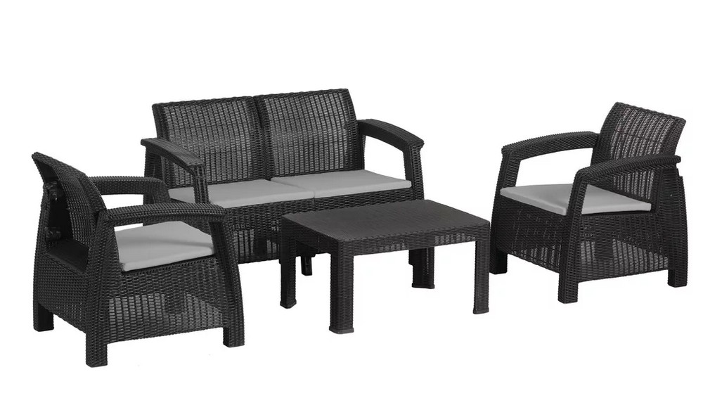 - Tillvekrat i gjuten plast, efterlikning av platt rotting, som kännetecknas av hög hållbarhet och hög bärkraft (upp till 160 kg).