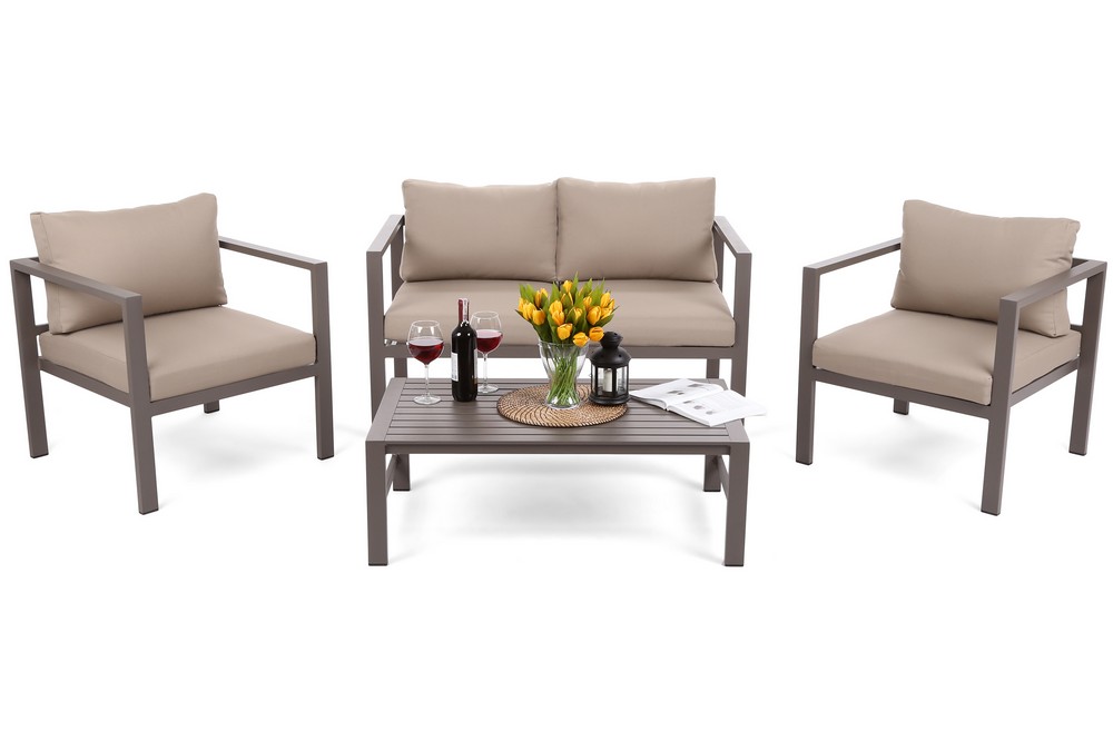 Möbelserien gör sig perfekt på den moderna uteplatsen och större balkonger. Möbelgruppen är tillverkad i pulverlackerad aluminium, som gör möblerna tåliga mot hårda väderförhållanden.