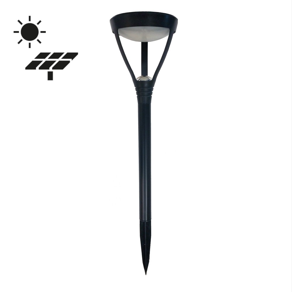 En solträdgårdslampa med bas i rostfritt stål. Denna trädgårdslampa är lätt att placera i marken tack vare markpiken. Lampan laddas av solen under dagen och kan slås på på kvällen med omkopplaren. Det varar länge och har varmt vitt ljus.