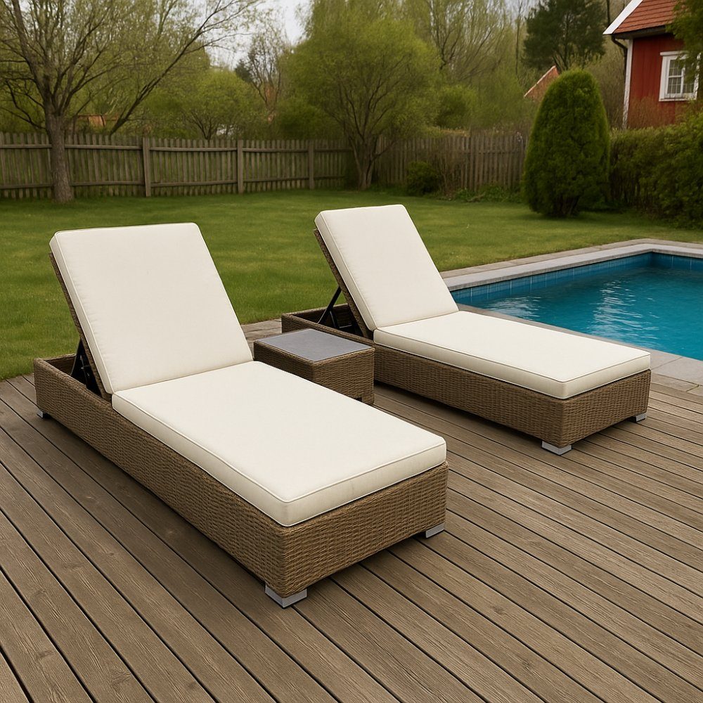 Solsängar konstrotting med bord - 2 st ställbara natur
