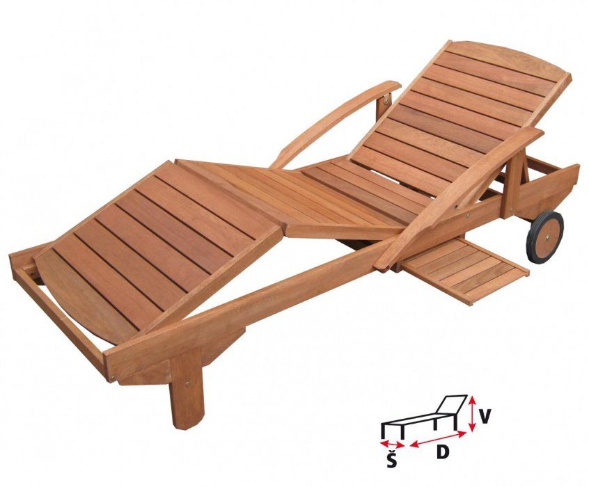 Elegant och bekväm vilstol i slitstarkt meranti-trä. Justerbar rygg- och fotdel för optimal komfort.
