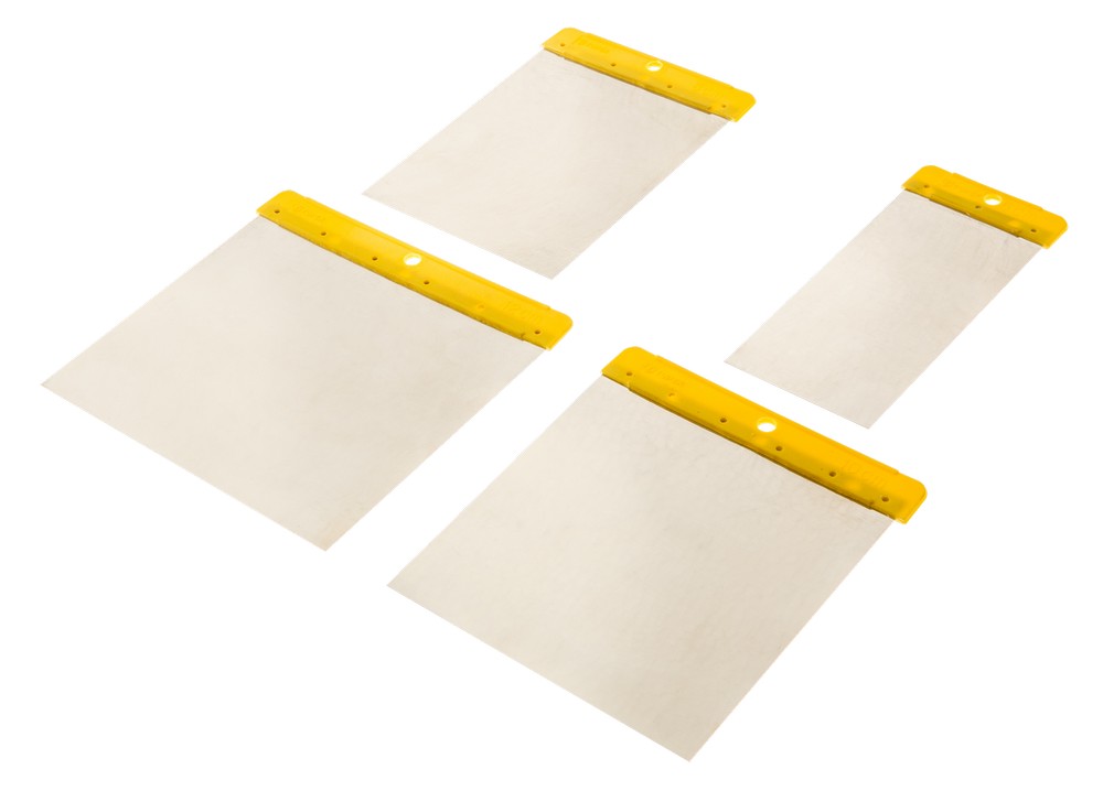 Fyra stycken skrapor i japansk stil, tillverkade i högkvalitativt rostfritt stål. Plastgrepp gör verktygen användarvänliga.