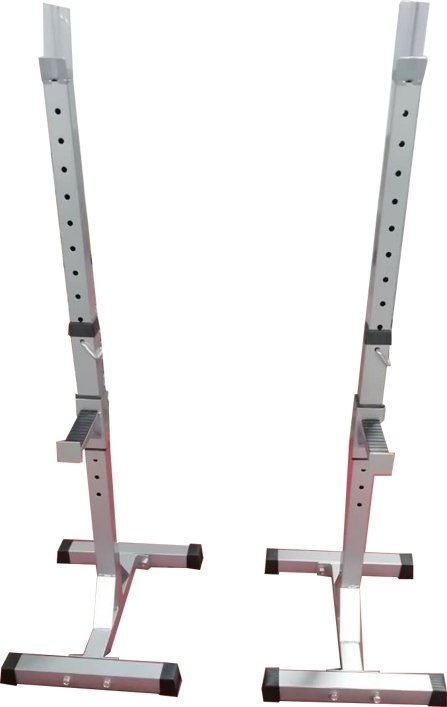 En smidig och praktiskt squat rack för skivstänger. Kommer i två delar, vilket gör det enkelt att flytta och justera dem för antingen squats eller bänkpress. Tack vare flyttbarheten kan du enkelt och bekvämt använda stänger av olika längder.