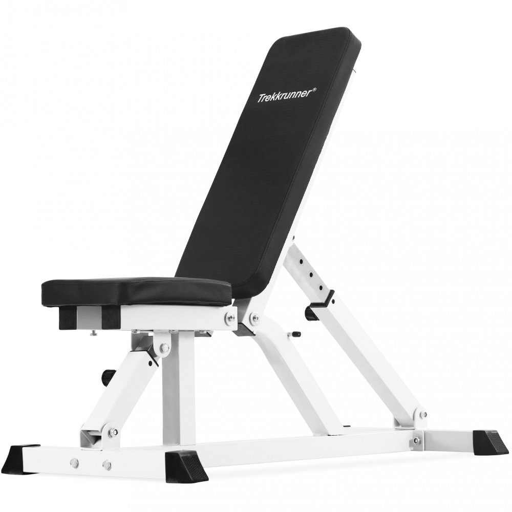 Bänken är fällbar och kan justeras för olika träningspositioner. Den kompakta designen gör den enkel att förvara när den inte används.