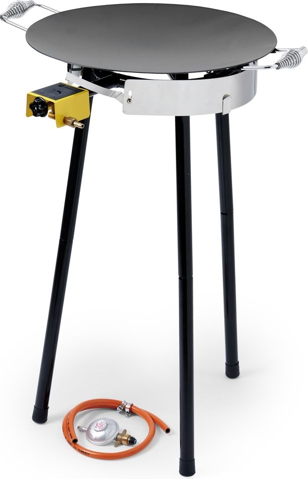 Stekhäll för perfekt matlagning på uteplatsen eller i trädgården. Stativ med två brännare för bästa resultat.
