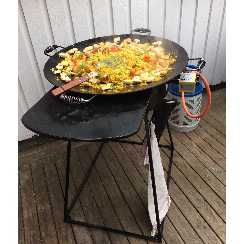 Stekhäll med stekbord för perfekt matlagning på uteplatsen eller i trädgården. Stativ med tre brännare för bästa resultat.