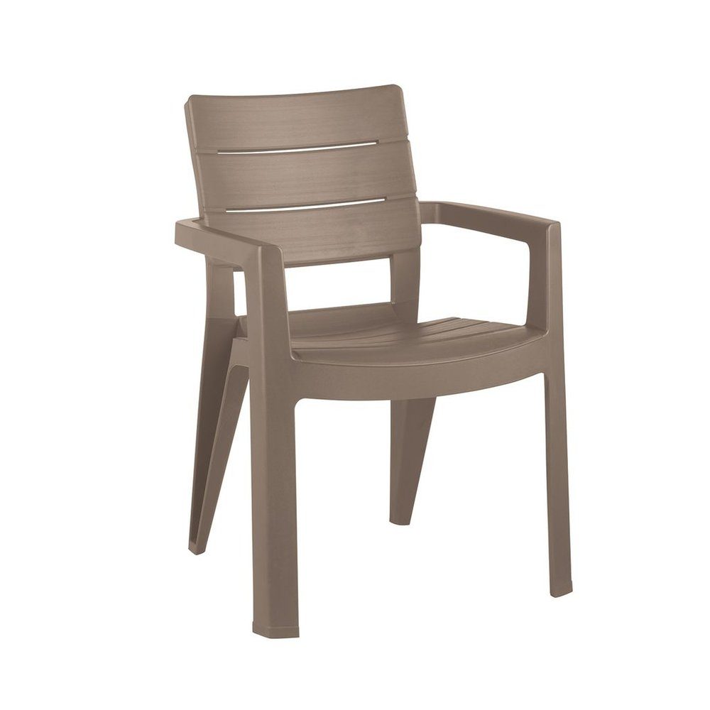Stol tillverkad i tålig plast som tål regn och sol utan problem.