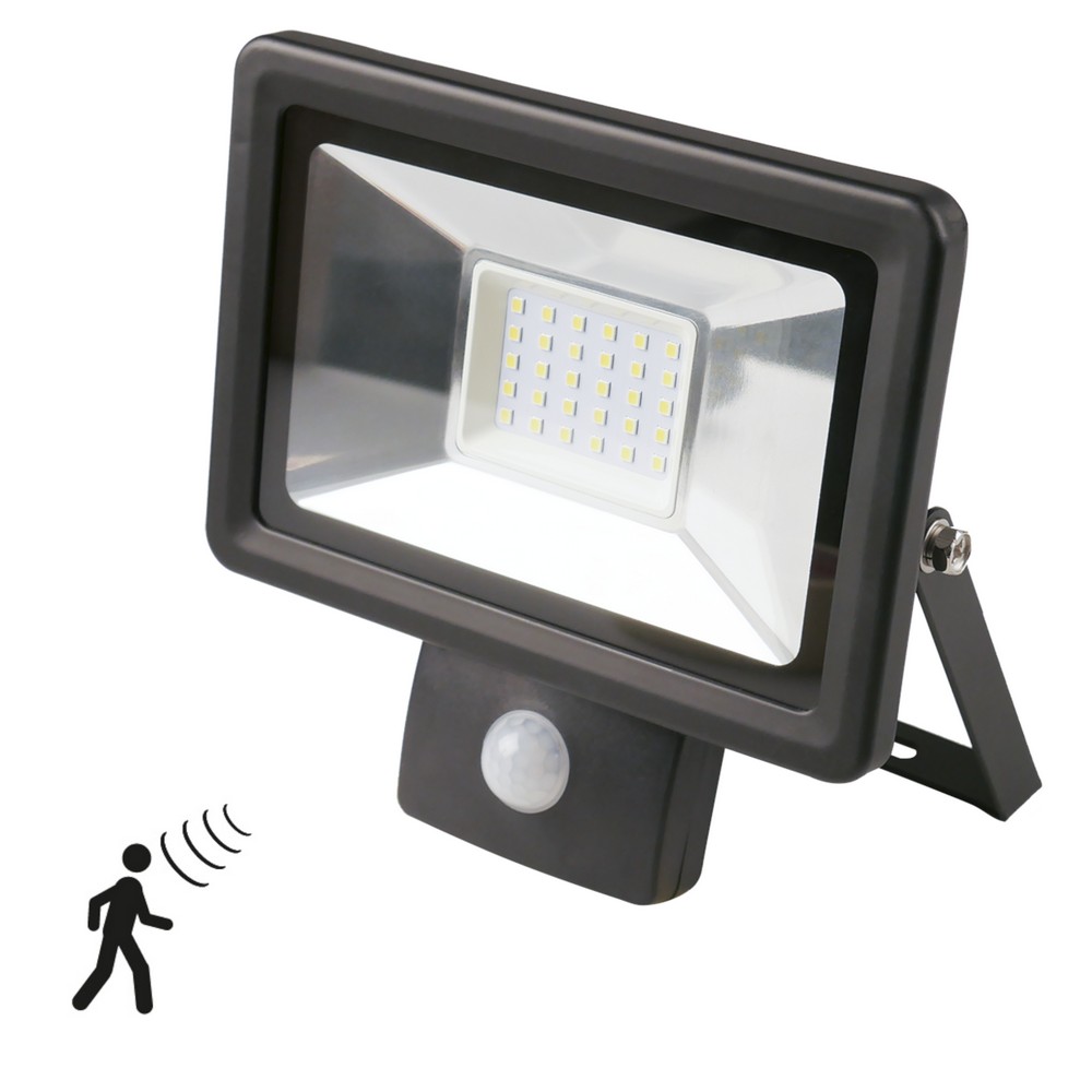 Strålkastare i aluminium försedd med PIR vakt och bestyckad med snabbkontakt där kabel enkelt ansluts.
