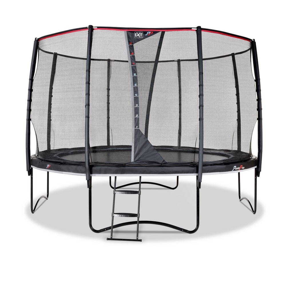 PeakPro med säkerhetsnät är en förstaklassig studsmatta med bekväma studs, inklusive stege. Studsmattan har ett robust utseende med svart ram och fjäderskydd.
