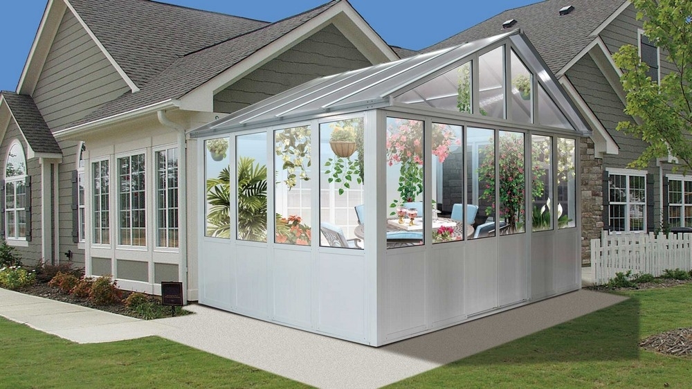 Sunrise Uterum har en taknock med snygg karaktär och rymlig takhöjd som ger många möjligheter och kan användas till precis vad du vill. Alternativt ett härligt rum för umgänge, spel, avkoppling eller kanske motion? Du kan fylla uterummet med prunkande grönska eller odla solmogna tomater. Oavsett vad du väljer att ha kan ditt uterum nyttjas många dagar om året. Både tak och väggar skyddar mot skadlig UV-strålning (50+), väder och vind. Dubbeldörren förs lätt fram och tillbaka på hjul och ger dig möjlighet att ventilera vid behov.