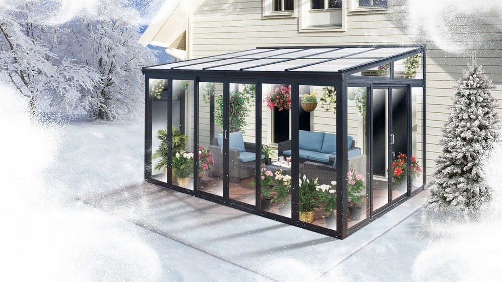 Uterummets väggar är av klart 5mm härdat glas som skyddar mot skadlig UV-strålning och är enkla att rengöra. Dess skjutdörrar ger dig möjlighet till att öppna upp och få god ventilation och passage både centralt på framsidan och på sidorna.
