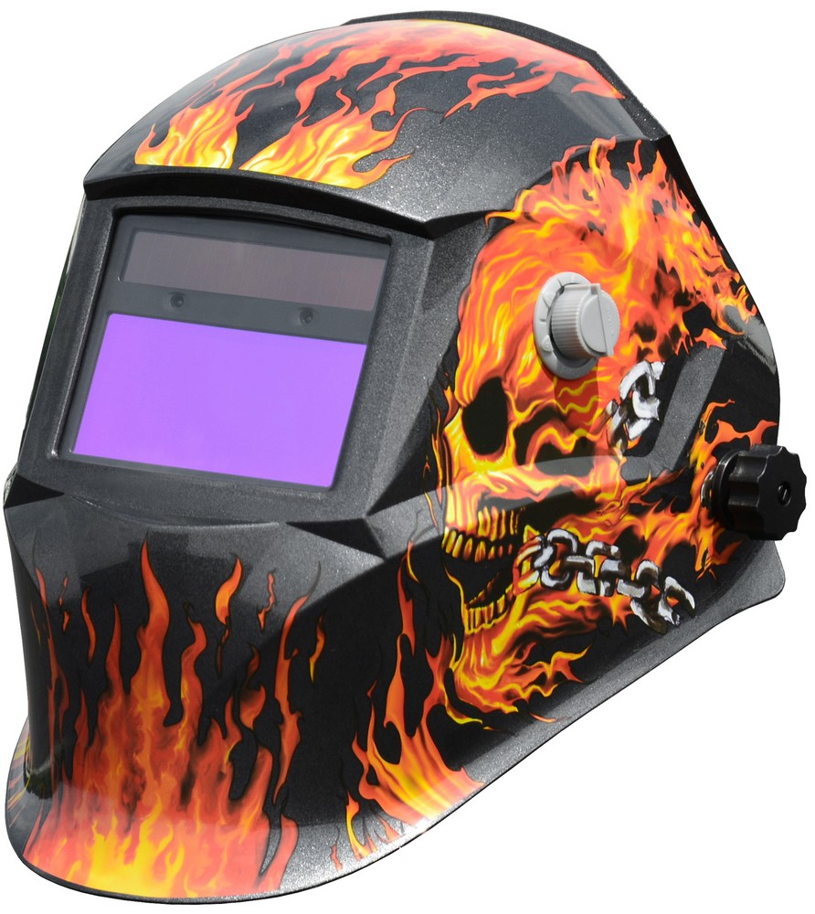 Svetshjälm - Viserdimensioner 100 x 50 mm. Svarstid <= 1/25000 s. Vikt 0,49 kg. Solceller + utbytbart litiumbatteri. Automatisk PÅ / AV. Larmar vid låg batterinivå.