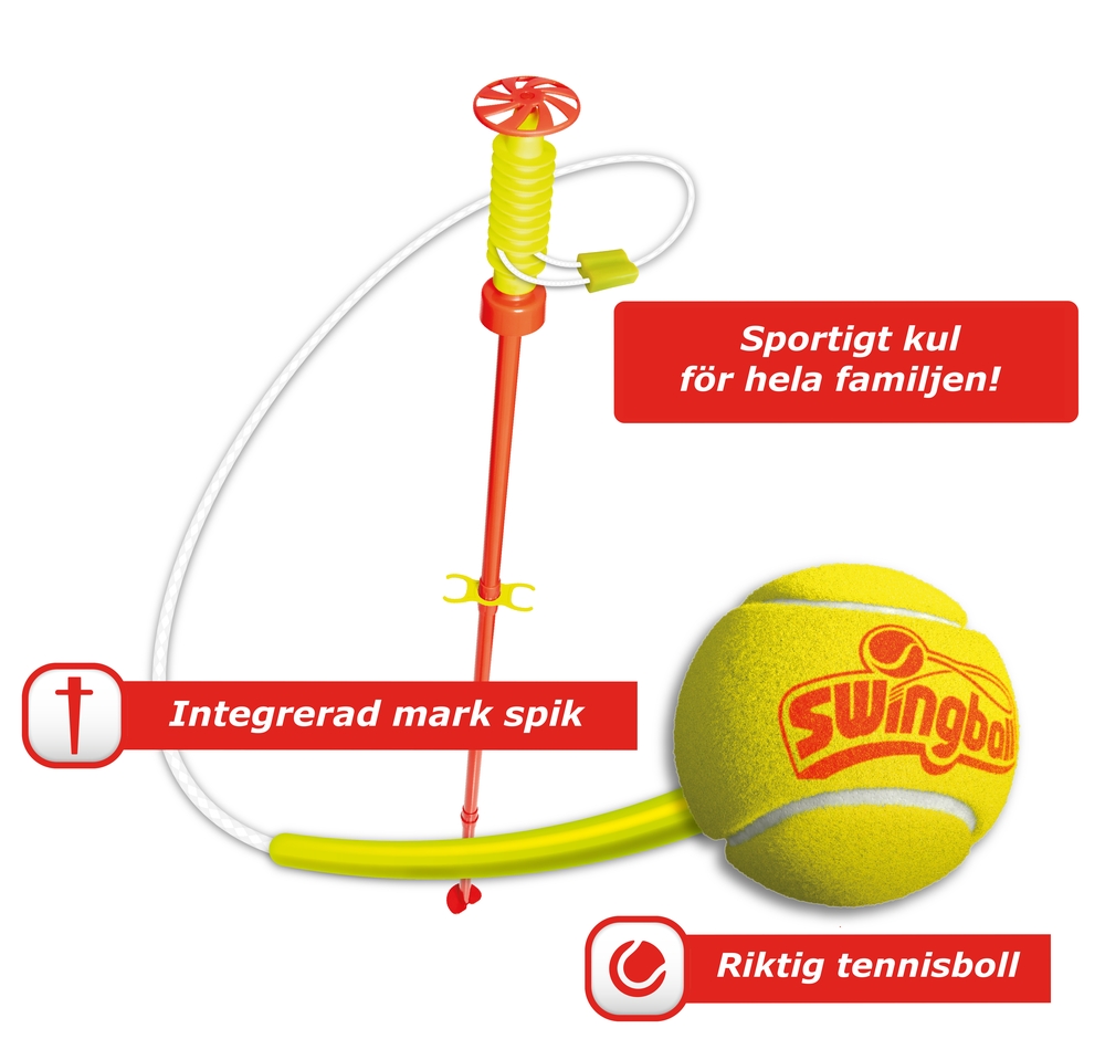 Rekommenderar åldrarna 5+ år. Tävla om att få bollen att nå toppen eller botten på spiralen. Stolpen har en reglerbar höjd upp till 1,6 meter och är rustad med en riktig tennisboll. Swingball är inte bara för trädgården, ta med den på semestern eller till stranden, Bara för ner stolpen i marken så är det bara att börja spela.
