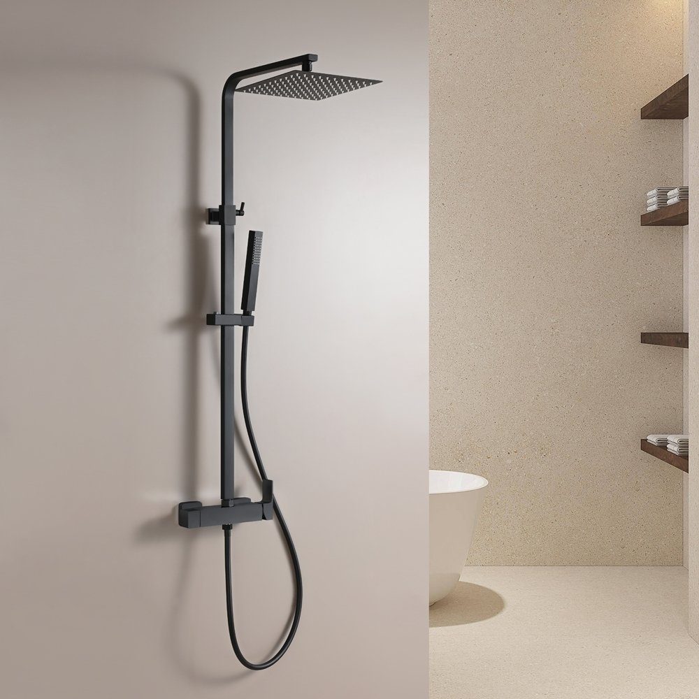 Takduschset Burs med handdusch i svart kombinerar modern design med funktionell elegans och erbjuder en sofistikerad lösning för ditt badrum. Duschkolumnen är justerbar mellan 80 och 120 cm i höjd med ett djup på 35 cm, vilket gör det enkelt att anpassa för olika badrumsutrymmen. Med högkvalitativa material och en stilren finish, är denna dusch en perfekt kombination av upplevelse och elegans.