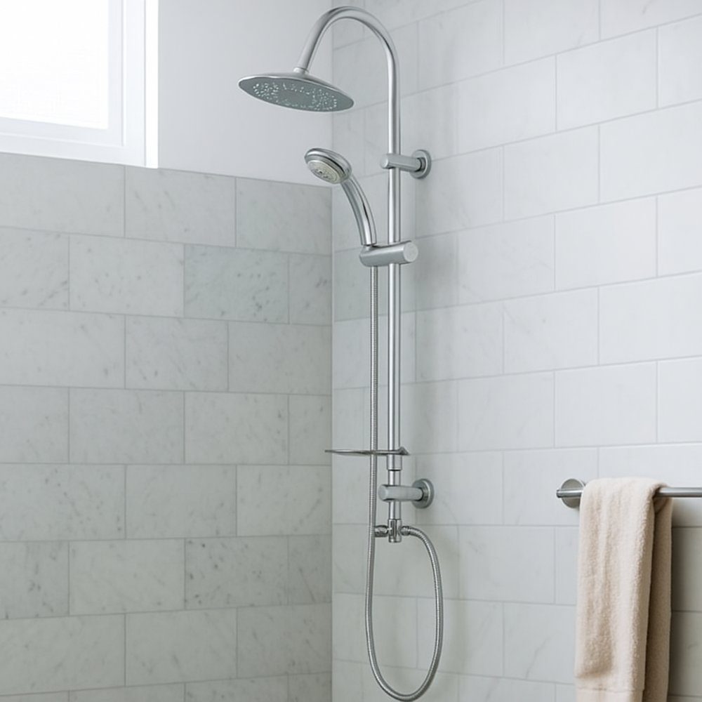 Detta duschset kombinerar en större takdusch på 20 cm med en smidig handdusch, vilket ger en flexibel och behaglig duschupplevelse. Tillverkad i rostfritt stål för hållbarhet och beständighet. Setet inkluderar en en blandare i mässing med kromfärgat ABS-reglage för precis temperaturkontroll. Med sitt stilrena utseende passar detta CE-certifierade duschset perfekt i moderna badrum.