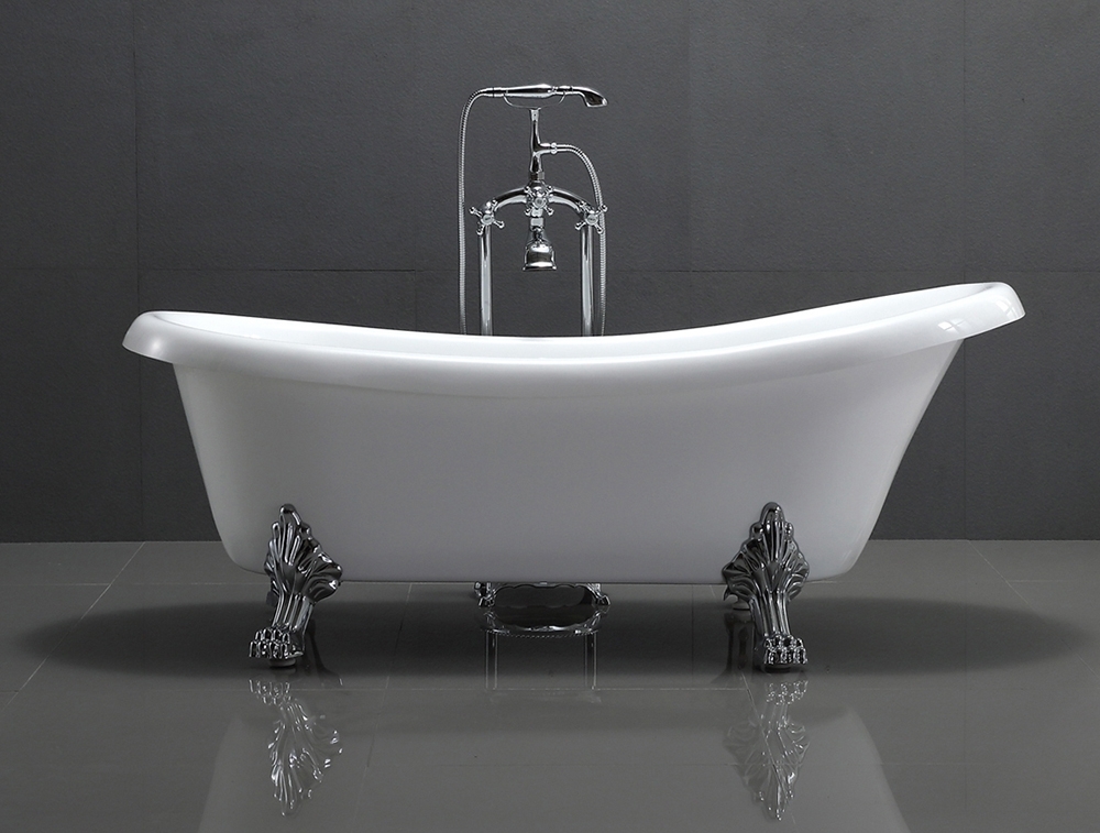 Ett elegant och klassiskt fristående badkar med lejontassar som passar perfekt i både moderna och det klassiska badrummet. Karet är tillverkat i akryl, ett mycket slitstarkt och behagligt material som är bra på att hålla värmen under en längre stund. Skulle det uppstå några repor eller skador på karet kan man enkelt slipa och polera för att snygga till det.
