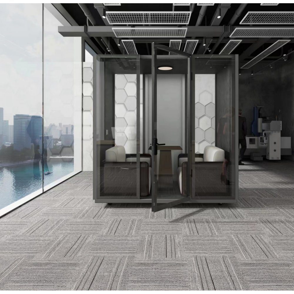 - Antistatisk matta: Telefonbåset har en antistatisk och anti-förorenande lågloopad matta som håller miljön ren och fri från damm.