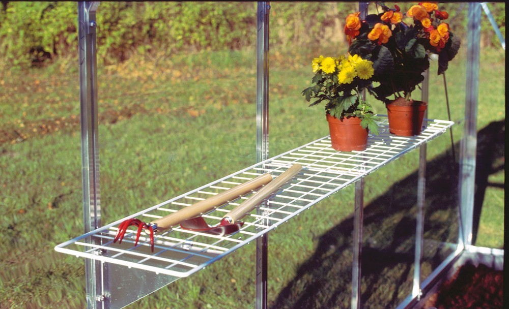 En flexibel trådhylla som kan monteras i växthuset profilsystem.