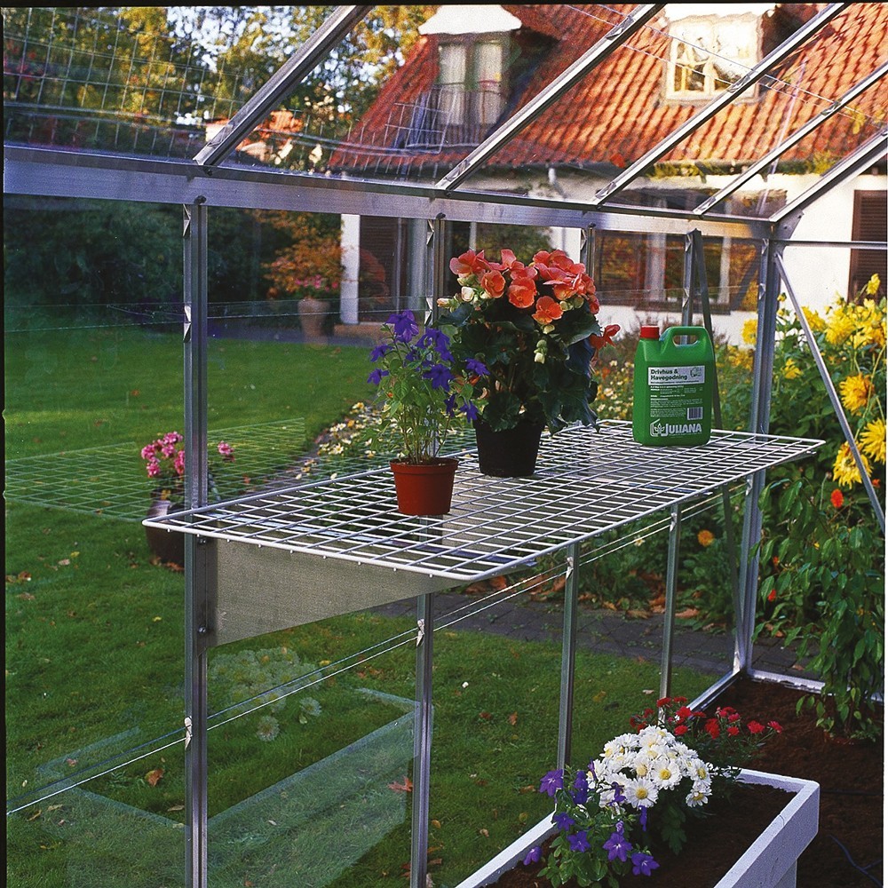 En flexibel trådhylla som kan monteras i växthuset profilsystem.