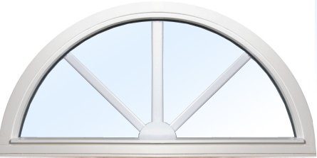 Halvrunt fast fönster med 3-glas isolerruta, energiglas och argongas. Glaset är i utförande klarglas. Karmdjupet är 100 mm. Fönstret är målat i Vit NCS S0502-Y (med andra färger som tillval). U-värde: 1.1.
