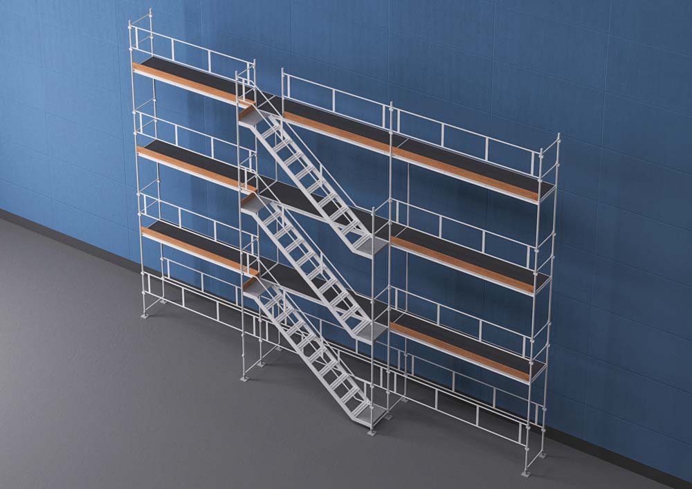 Trapptornspaket till Ramställning från HAKI innehåller allt du behöver för att få upp ett trapptorn utanför din ställning. Ett trapptorn kan vara smidigt för att göra det smidigare att ta sig upp och ner inom byggställningen utan att behöva använda en invändig stege.