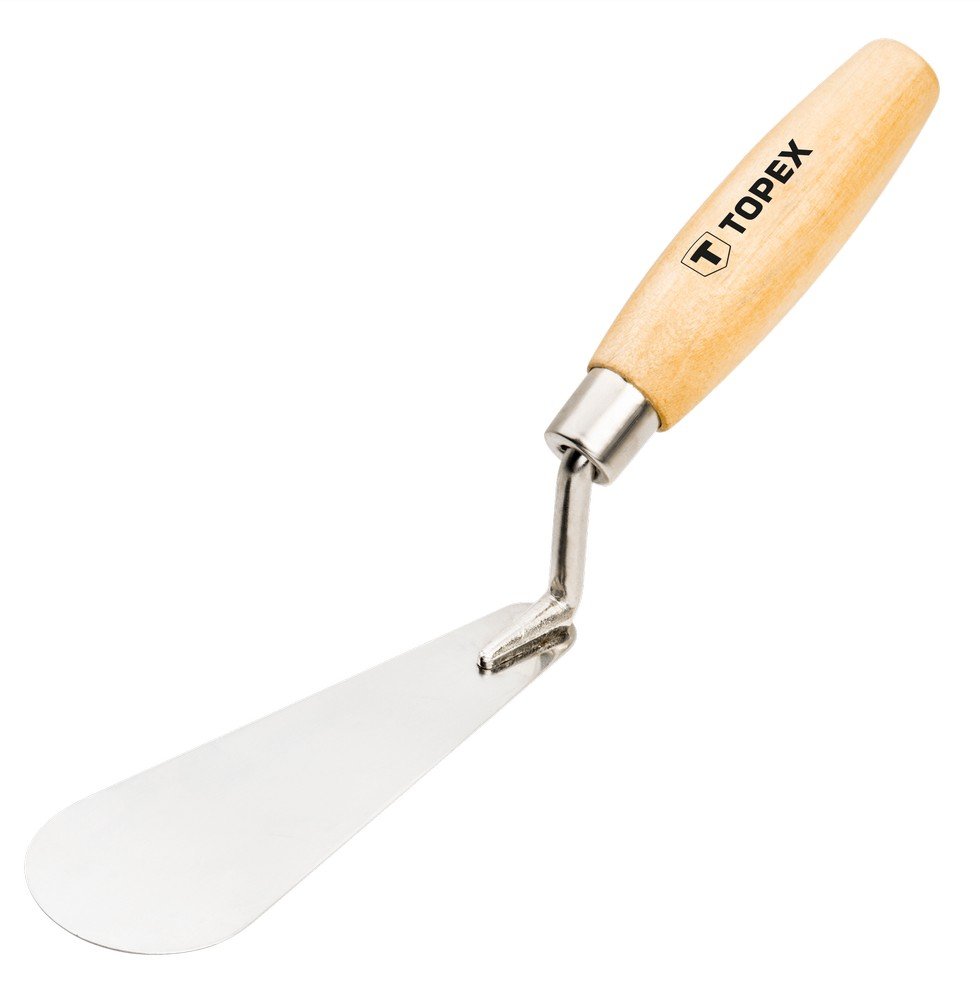 Designad för applicering av små mängder gips, lim och murbruk i svåråtkommliga områden. Tillverkad i högkvalitativt rostfritt stål med handtag i trä.