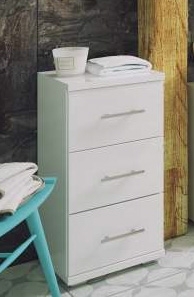 Underskåp ur möbelserien Bari. Möblerna är tillverkade i MDF med sidostycken i vit laminat och luckor i vit lack.