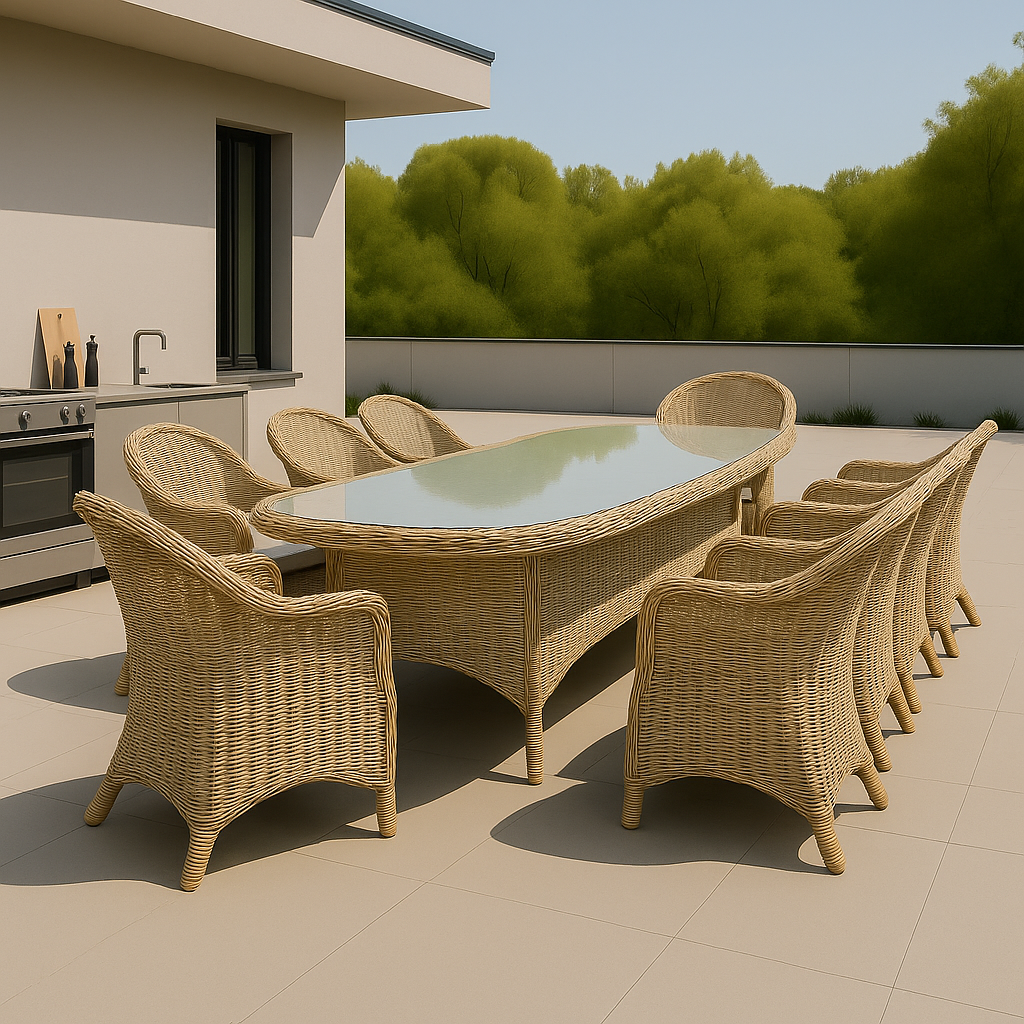 Utegrupp: 8 stolar och matbord 230 x 100 cm rotting - Menton/Mercury