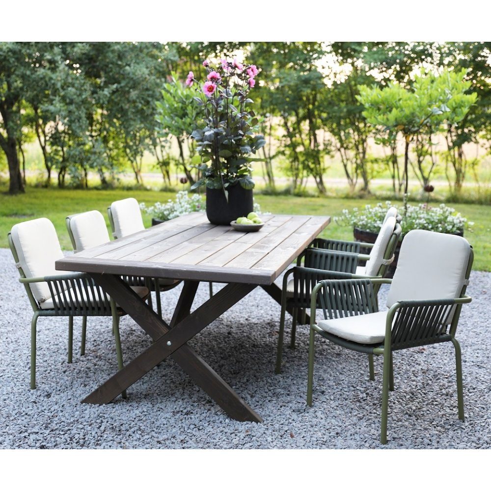 Utegrupp: Bord 220 cm Brun/Grön med 6 st stolar