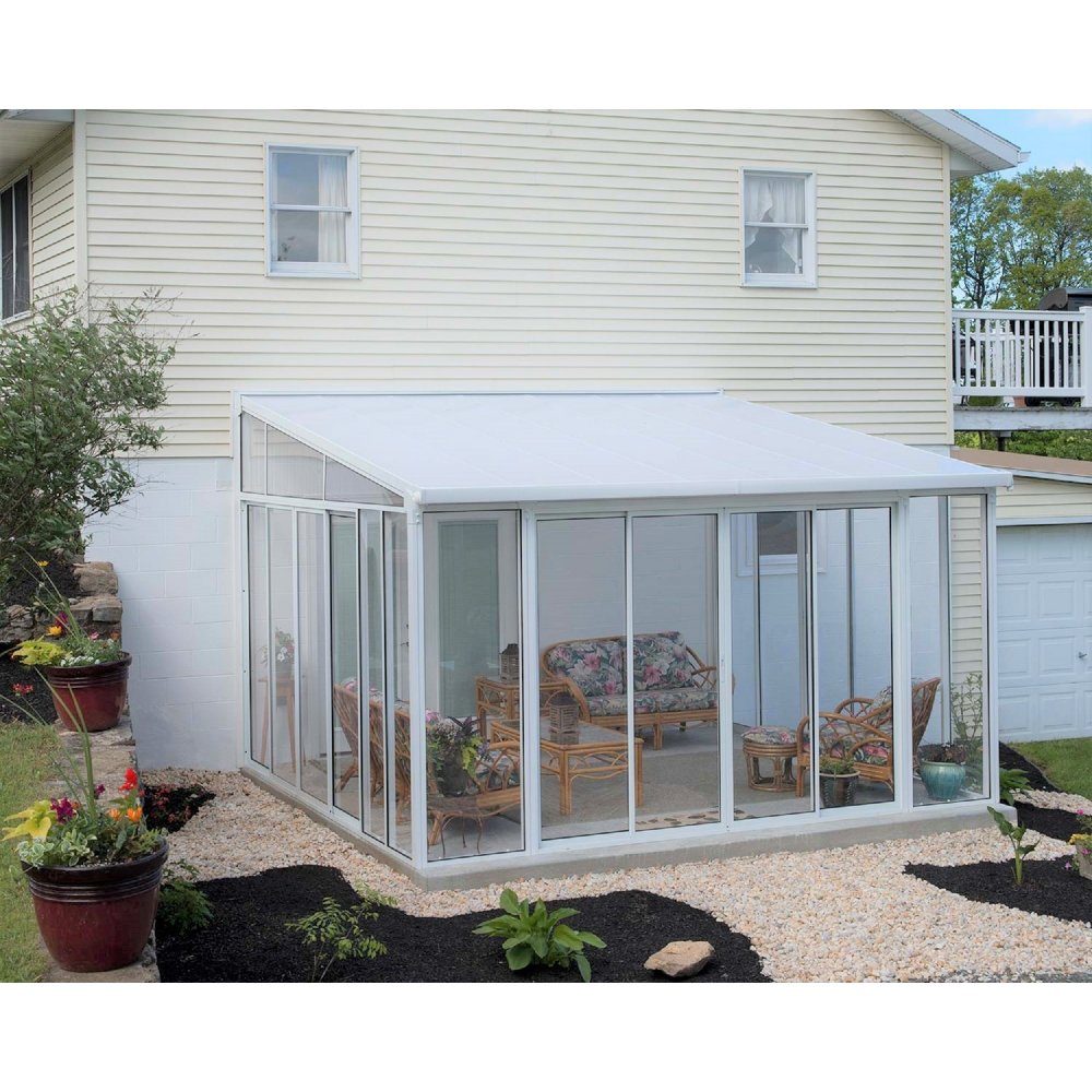 Taket har opalvit 8 mm polykarbonat panel som släpper igenom 25 % ljus och är 100% UV-skyddande både för människor och möbler, vilket gör att möblerna håller mycket längre. Polykarbonaten är mycket slagtålig och håller för väder och vind.