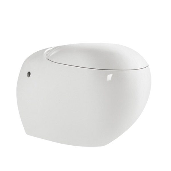 Vit, vägghängd toalettstol med rengöringsvänlig glasyr.