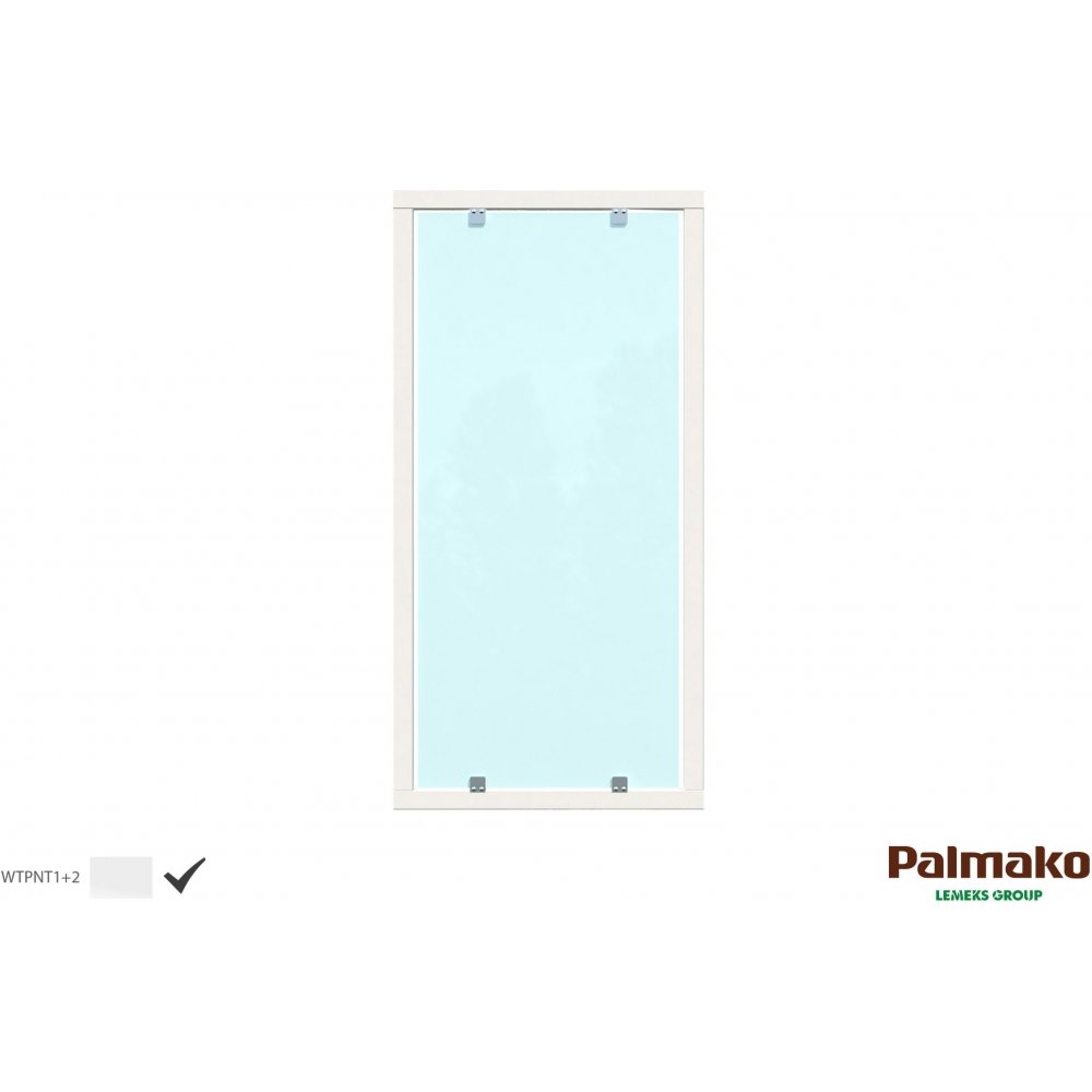 Skärmen är tillverkad av nordisk gran, målat med primer och två lager vit färg, samt 6 mm härdat glas.