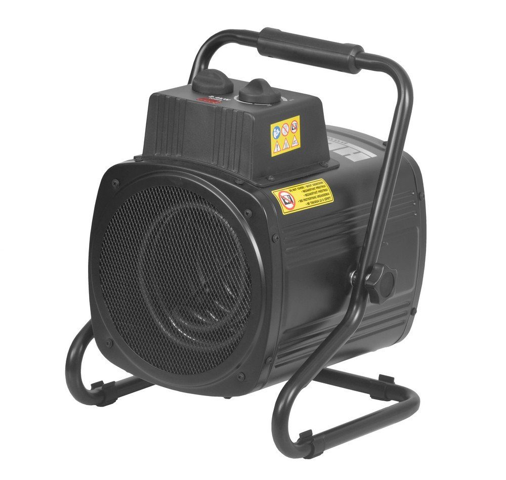 Elektrisk fläkt, kan användas med eller utan värme, 24/1200/2400 W. Lämplig för rum upp till 24 m³.
