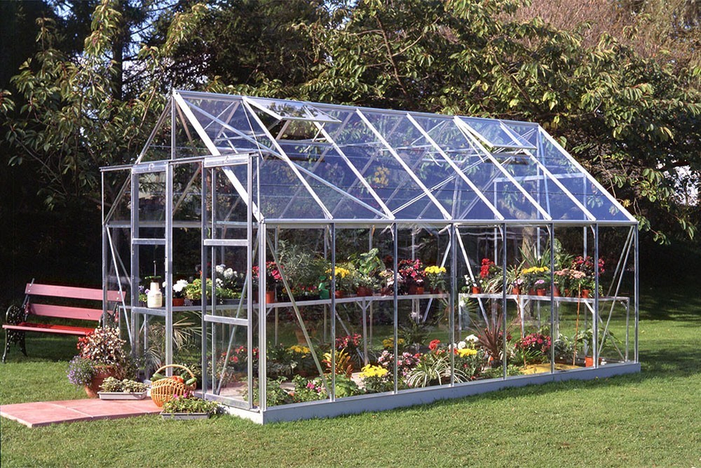 Du kan få växthuset antingen i en grön lackering eller i aluminium och med flera olika glasalternativ.