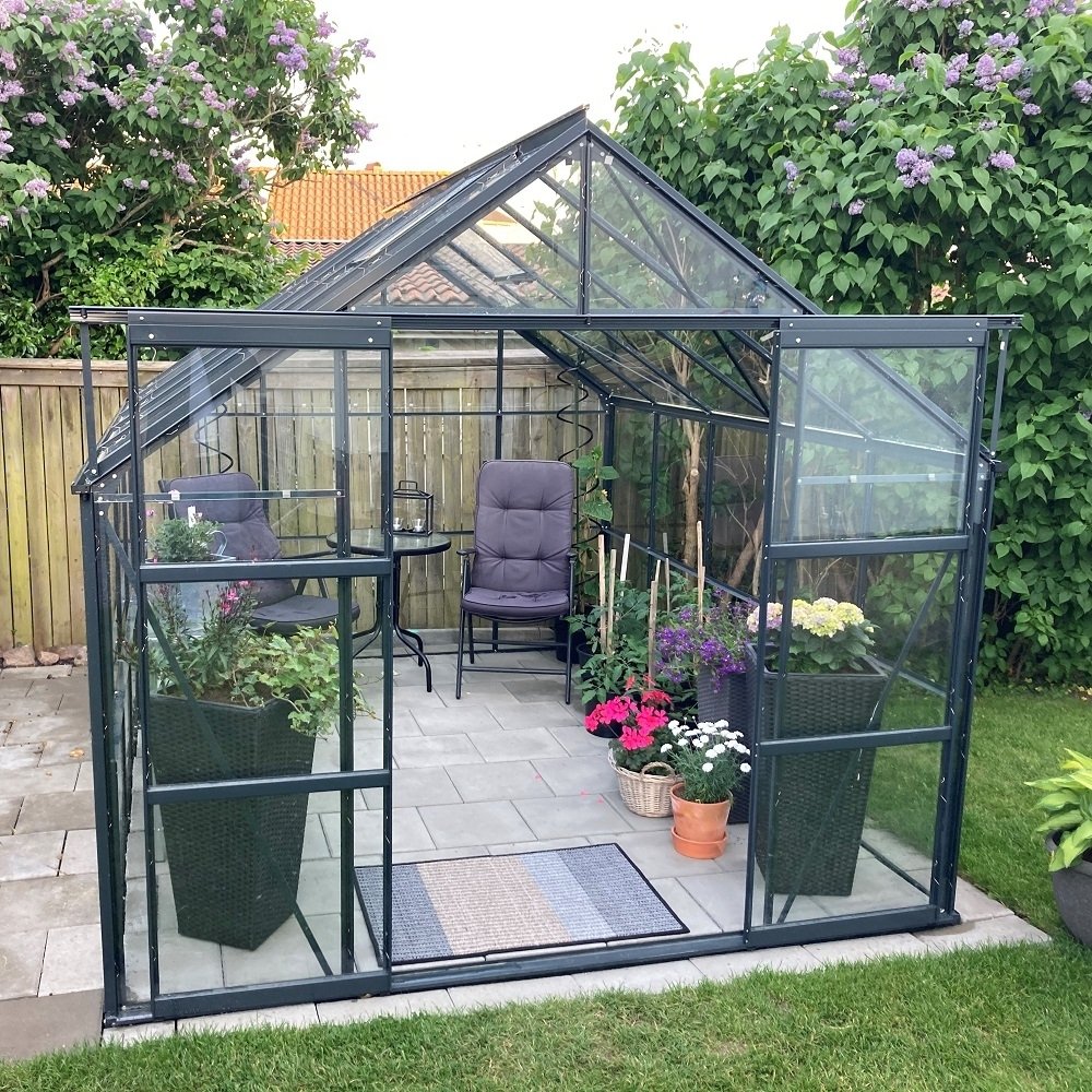 Växthus Rhea - Svart med härdat glas - 7,4 kvm