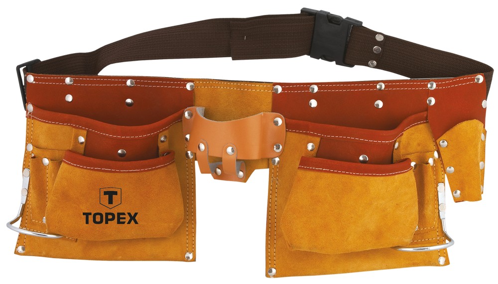 Ett justerbart verktygsbälte i läder med 11 praktiska fickor.