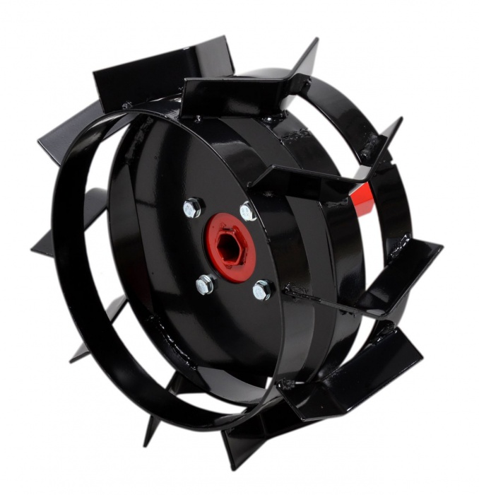 Set med 2 järnhjul tänkta att användas med dem olika plogarna som också finns att köpa till.
