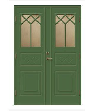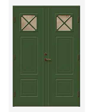 - Stomme: Konstruktion i furuträ med 50 mm värmeisolering, samt 0,5 mm aluminiumplåt på både in och utsida av dörren.