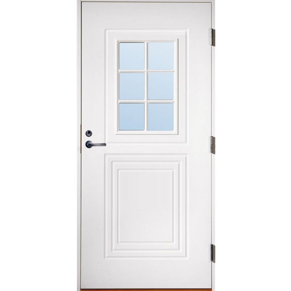 Det fina rektangulära fönstret i dörren är i välisolerande 2-glaskassett med argonfyllning mellan glasrutorna.