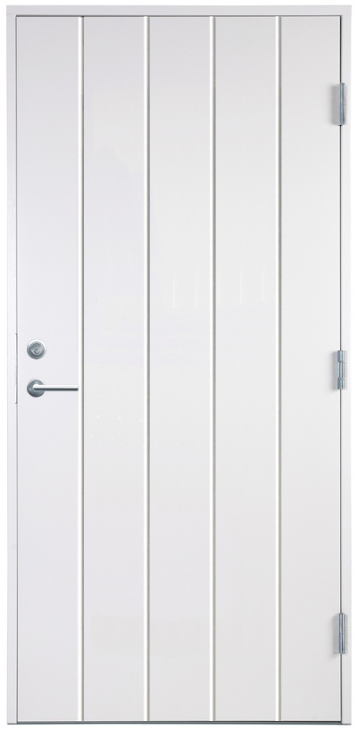 Ytterdörr Göteborg har en enkel stilren design med sina vertikala ränder. Dörren är lätt att matcha med olika fasader och är perfekt till exempelvis ett garage eller förråd där du vill ha insynsskyddat. Dörren blir dessutom mycket tät och energisnål när den helt saknar fönster.