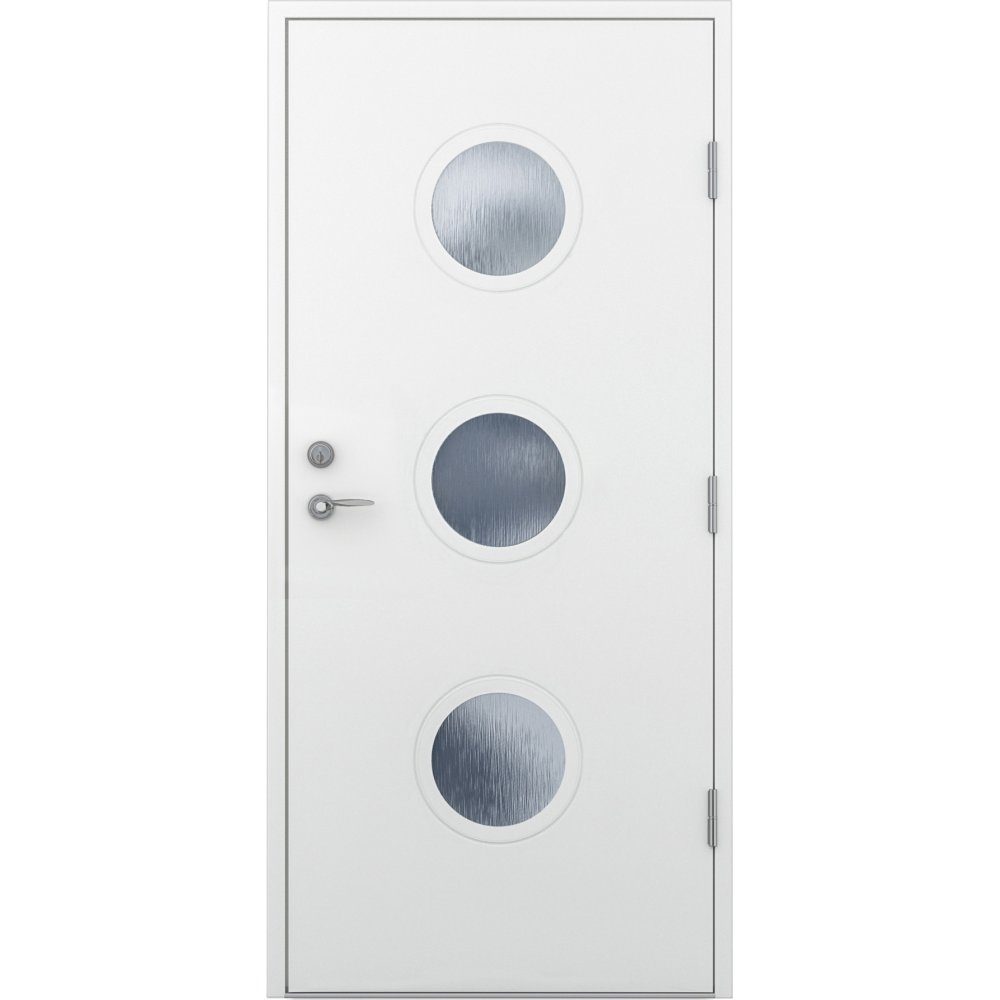 Ytterdörr Clara har en häftig utformning som framhäver sin plats. De tre runda fönsterna har ett härligt ljusinsläpp som bidrar till din inre miljö i hallen, medförande en känsla av kabyss och båtar, men passar himla bra in i den moderna arkitekturen. Dörren finns att få i många olika utföranden för att passa dina behov.