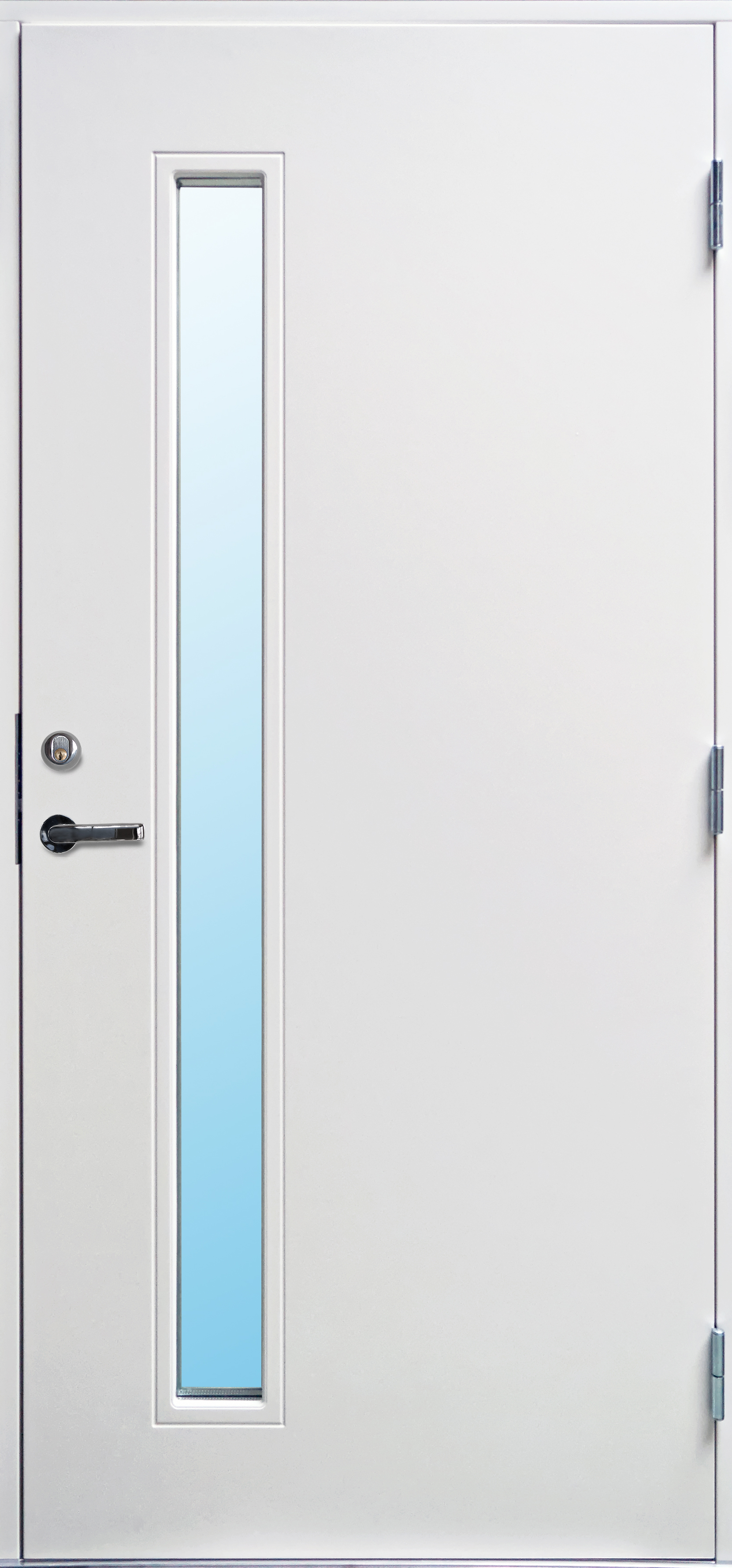 Ytterdörr Maria har enkel stilren design med simpla spårfrästa linjer som markerar det långsmala fönstret. Här tränger sig solstrålarna igenom och lyser upp din hall. För övrigt är dörren slät och fin, vilket gör det lätt att rengöra. Dörren passar fint till det moderna huset såsom det klassiska.
