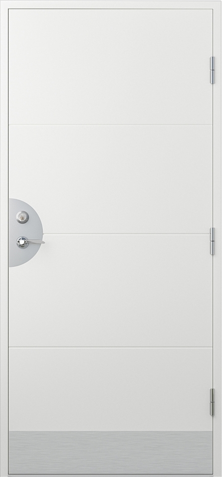 Ytterdörr Stephanie Tät är en stilren dörr med spårfrästa linjer och härliga detaljer i rostfritt. Både vid handtaget och dörrens nederkant har du rostfritt stål som skyddar dörren extra och gör det lätt att rengöra. Eftersom dörren inte har något fönster blir den extra energisnål. Vill du ändå kunna se vem det är som kommer kan du välja till ett titthål i tillvalsmenyn. Med sitt enkla formspråk passar dörren både till det klassiska och moderna huset, samt till garaget eller förrådet.