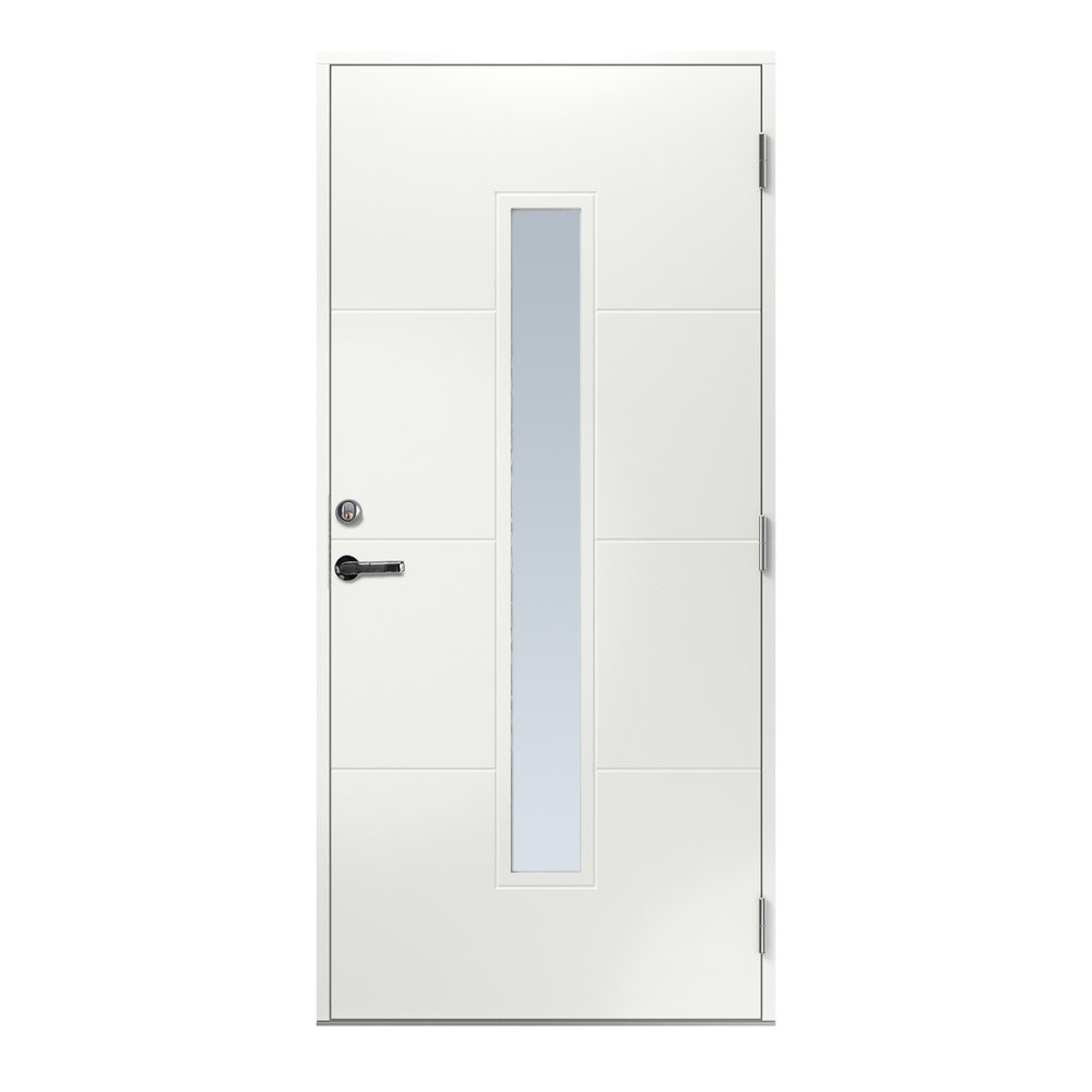 Många ytterdörrar på marknaden har en slät insida, men med denna dörren får du både insida och utsida med det fina frästa mönstret. Dessutom har den dubbel tätningslist för extra isolerande effekt, låskista och justerbara gångjärn inkluderat.