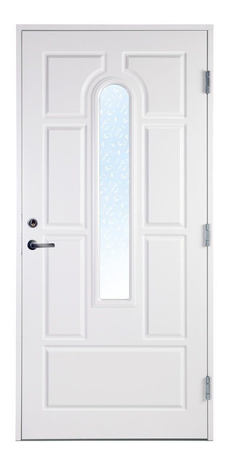Fönstret i dörren är välisolerad 3-glaskassett med 4 mm glas, 14 mm argonfyllning mellan rutorna.